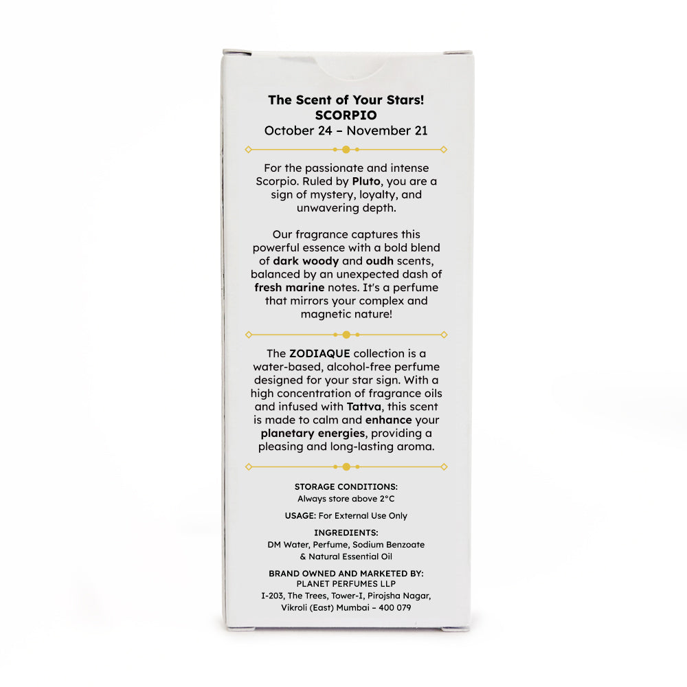 Passionate, intense, and fearlessly loyal, Scorpions experience life in emotional extremes. Zodiaque Scorpio channels this depth into scent, moving through dark, woody warmth and oud notes, contrasted by an unexpected marine freshness, bringing in a certain steadiness when emotions feel deeply stirred.